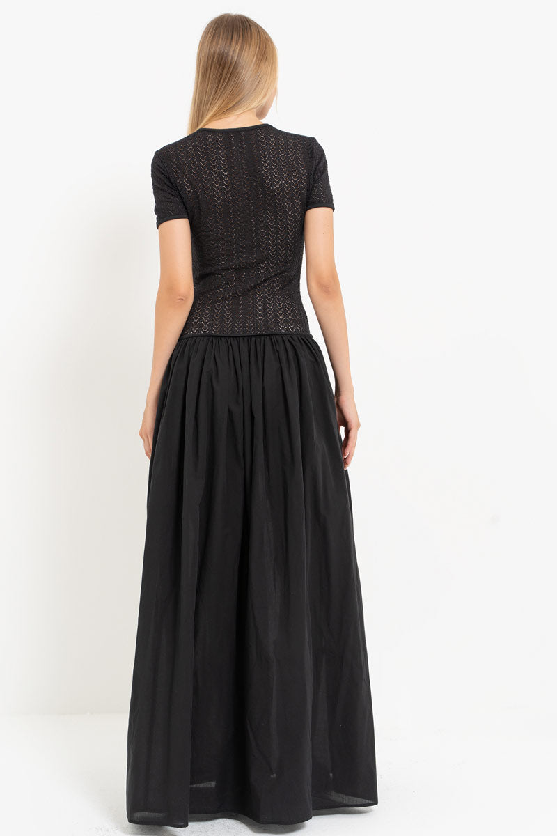 Black Mesh Detail Hooked Maxi Dress