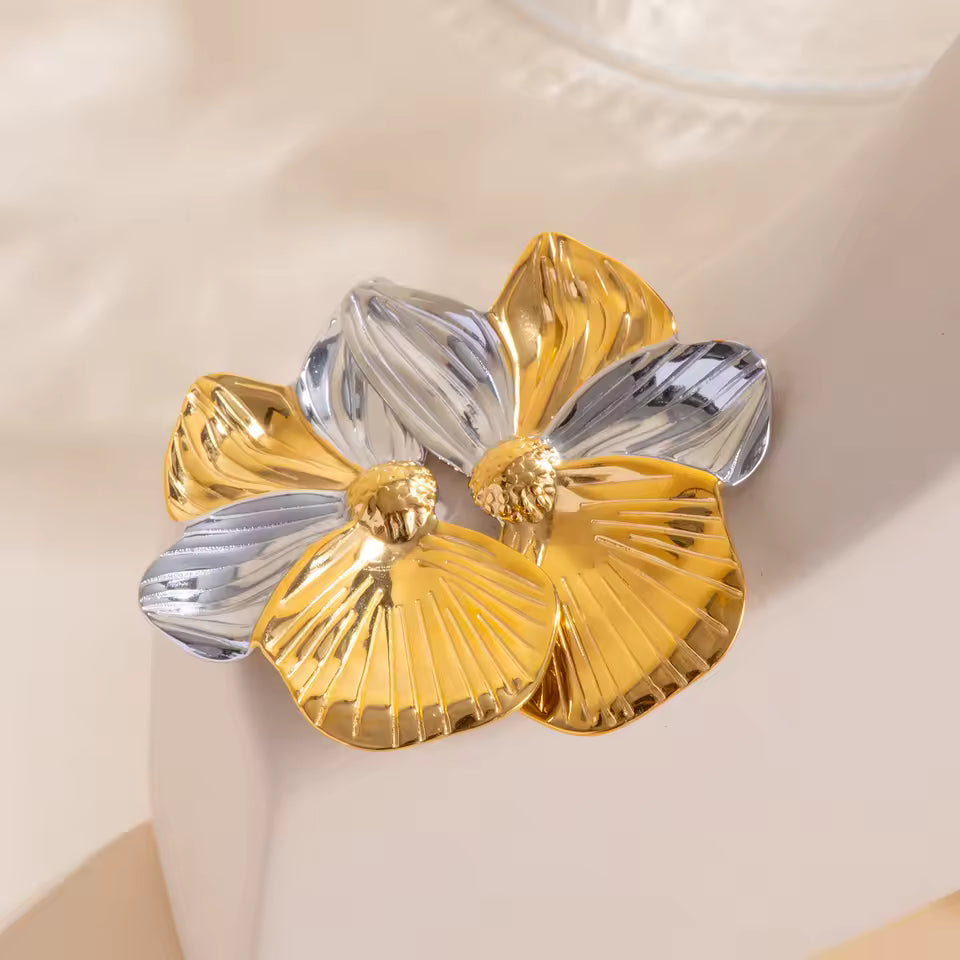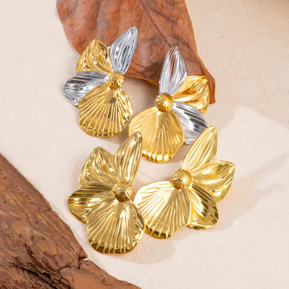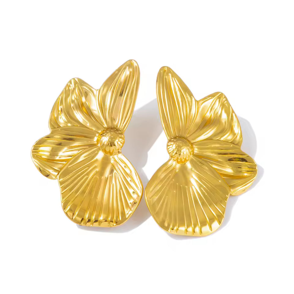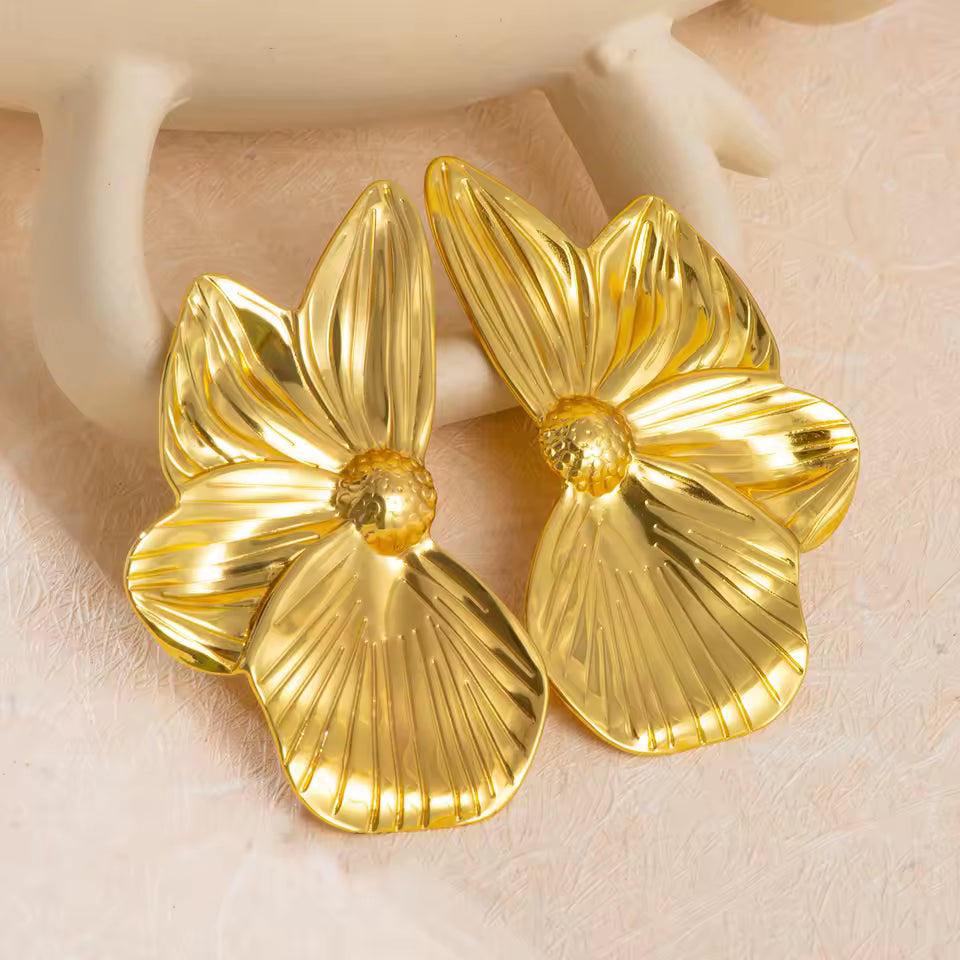 Make a bold floral statement with these show-stopping flower studs! Constructed from premium 316L stainless steel and finished with luxurious 18K PVD gold plating, they're impossible to miss. At 58 × 35 mm, these beauties command attention without sacrificing comfort at just 16.5 g. Waterproof, tarnish-proof, and hypoallergenic, they're your ticket to confident style—even with the most sensitive skin. Go big, go bold, go floral!