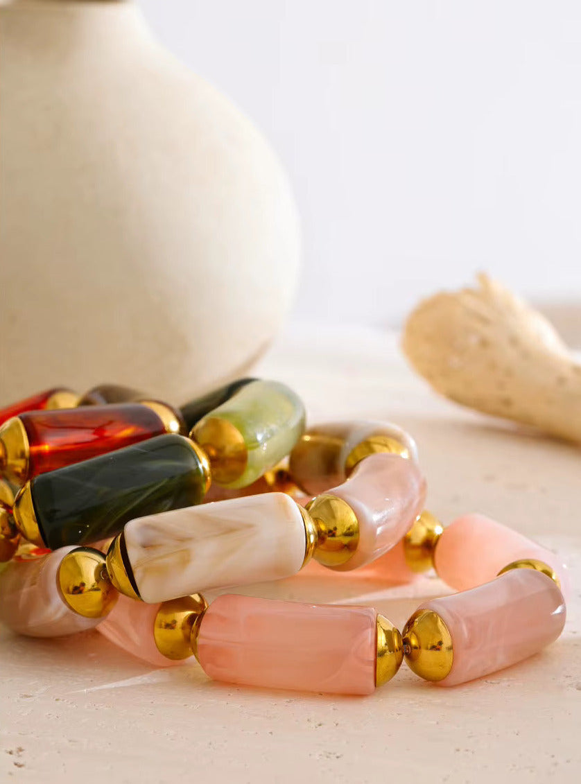 Green Resin Cylinder Elastic Bracelet