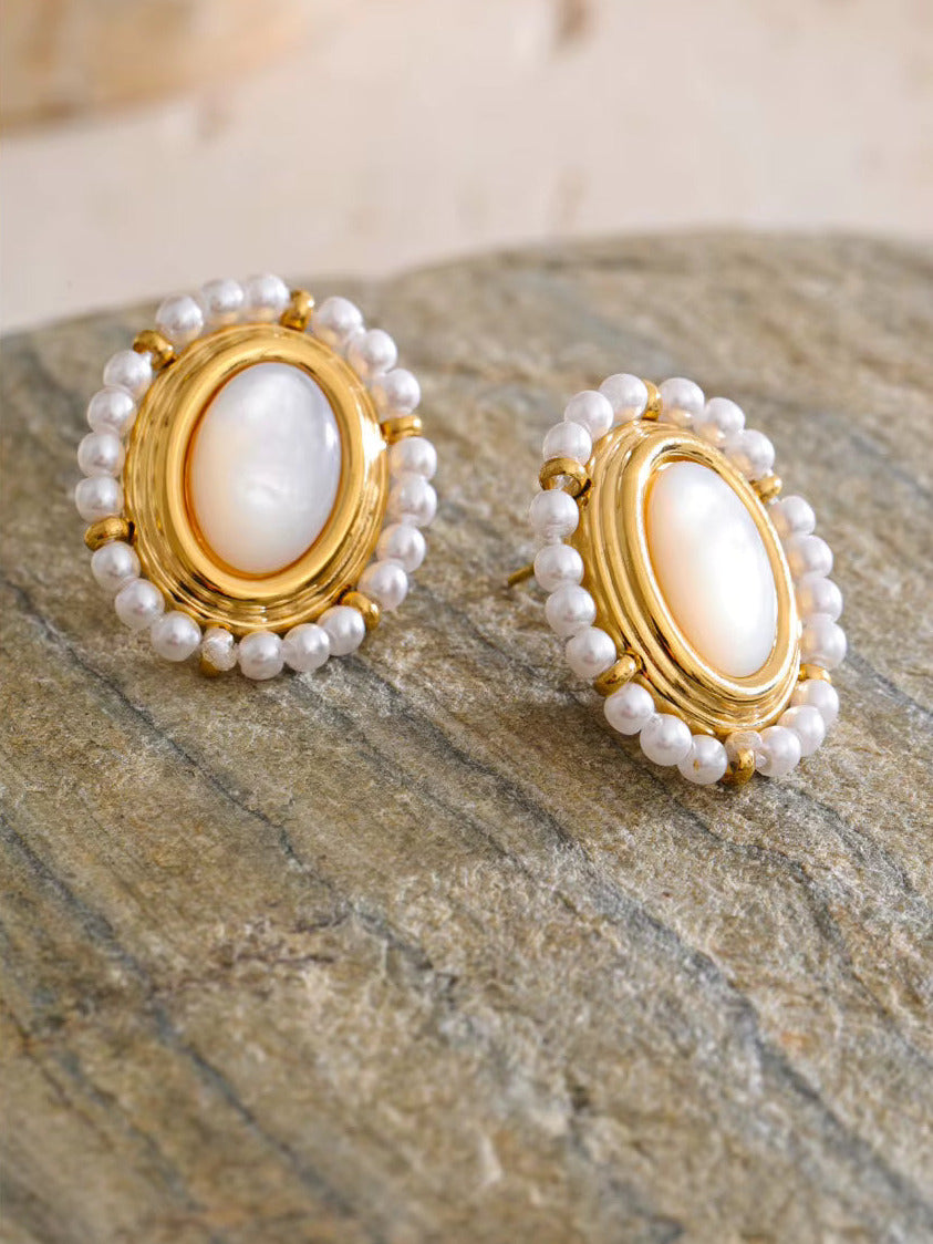Inlaid Natural Shell and Simulated Pearls Stud Earrings