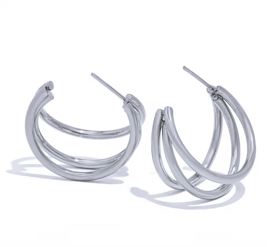 Rock these stunning multilayer C-shape hoops! Crafted from premium 316L stainless steel, choose between radiant 18K PVD gold or elegant platinum finishes. At 25 × 14 mm and just 8 g, they're feather-light and perfectly sized. Waterproof, tarnish-resistant, and hypoallergenic—safe for sensitive skin. These contemporary beauties bring effortless sophistication and dimension to any outfit!