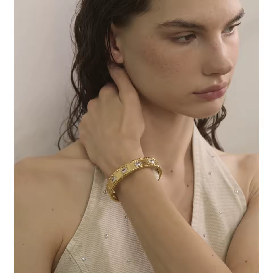 Square Zirconia Cuff Bracelet